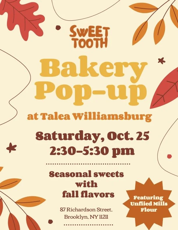 We partner with bars, breweries, and other venues to host pop-ups about once a month. Check out our past pop-ups below, and reach out to sweettoothbakery.bk@gmail.com if you’re interested in hosting a Sweet Tooth pop-up!